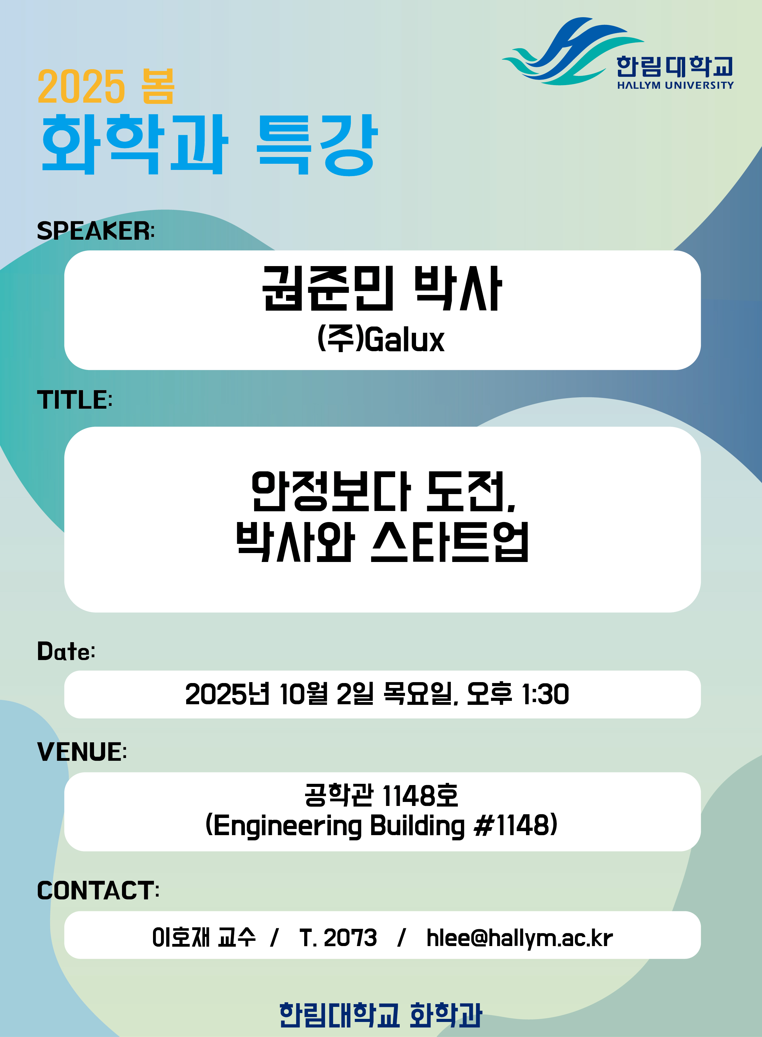 2025학년도 2학기 화학과 특강 "안정보다 도전. 박사와 스타트업"