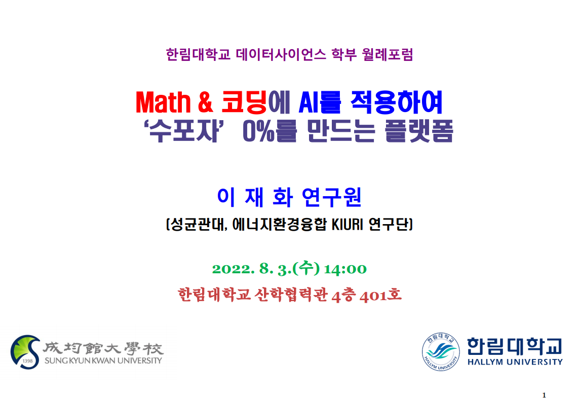 - 주제 : Math & Coding에 AI를 적용하여 '수포자' 0%를 만드는 플랫폼