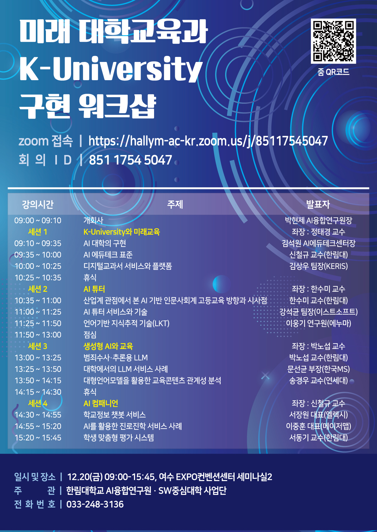 ■ 줌 주소: https://hallym-ac-kr.zoom.us/j/85117545047 (포스터 내 줌 QR코드 참고)