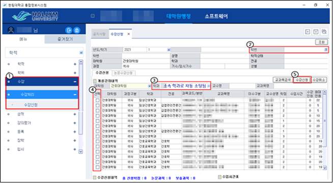 3. 신청 교과목 학과별(전공별) 첨부파일 필히 확인 후 신청할 것!