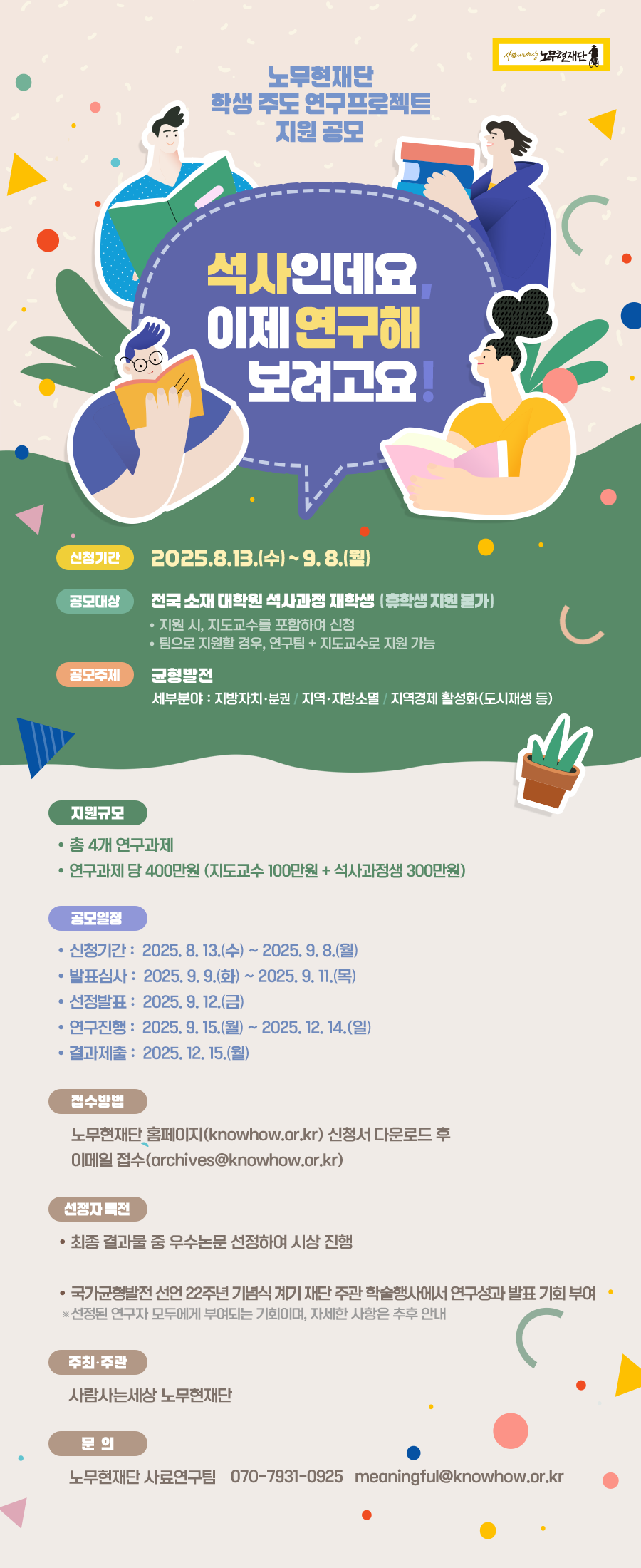 [노무현재단] 2025년 학생주도 연구프로젝트 지원 공모전(석사과정생 대상)